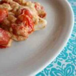 Heat large skillet to medium high heat. Add dressing, onions, garlic, tomatoes and heat for 8-10 minutes.