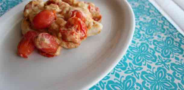 Spray skillet with cooking spray and cook chicken breast on both sides until cooked through. Add cheese mixture on top and serve with fresh basil. (Sometimes I don't have it!)